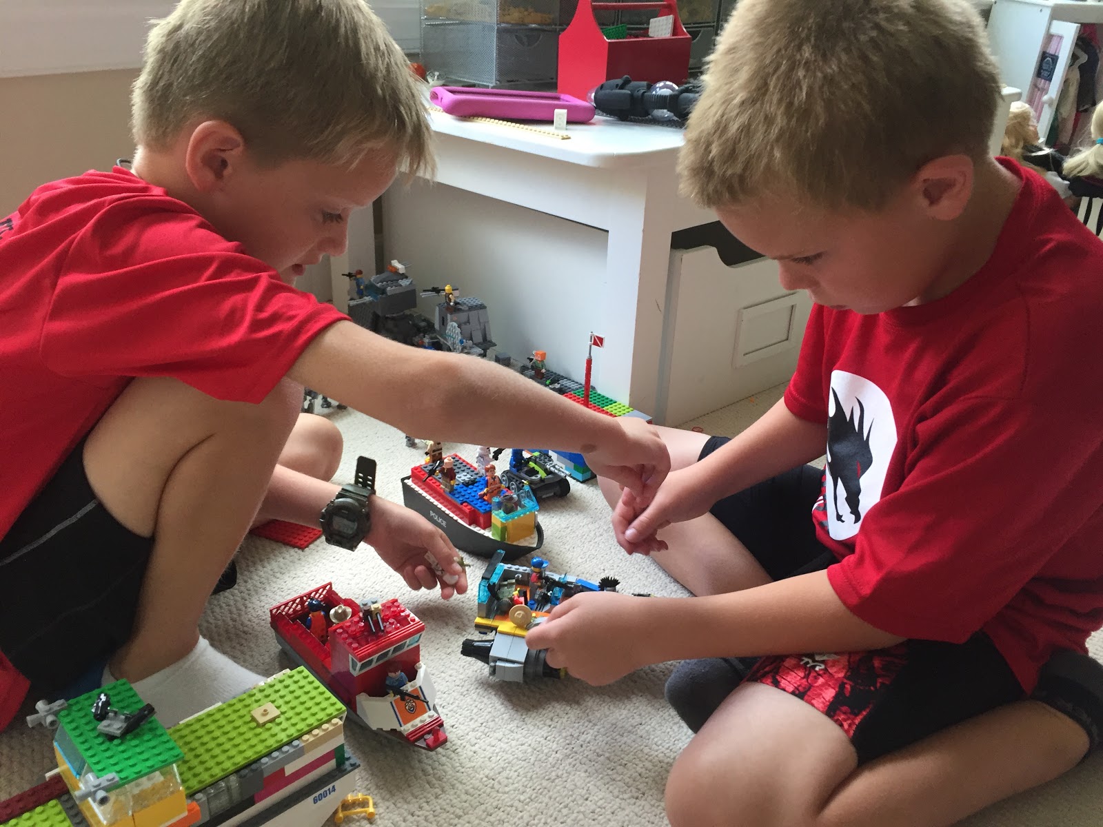 The afternoons following tennis camp were all about some serious guy time. Thanks to Alec's Aunt, we took turns taking the boys out to lunch each day and then letting them choose whatever they wanted to do the rest of the day. Some of the fun included legos, games, backyard bonanza, bowling, pool, defy gravity and a sleepover which would not be complete without a little Harry Potter and milkshakes!