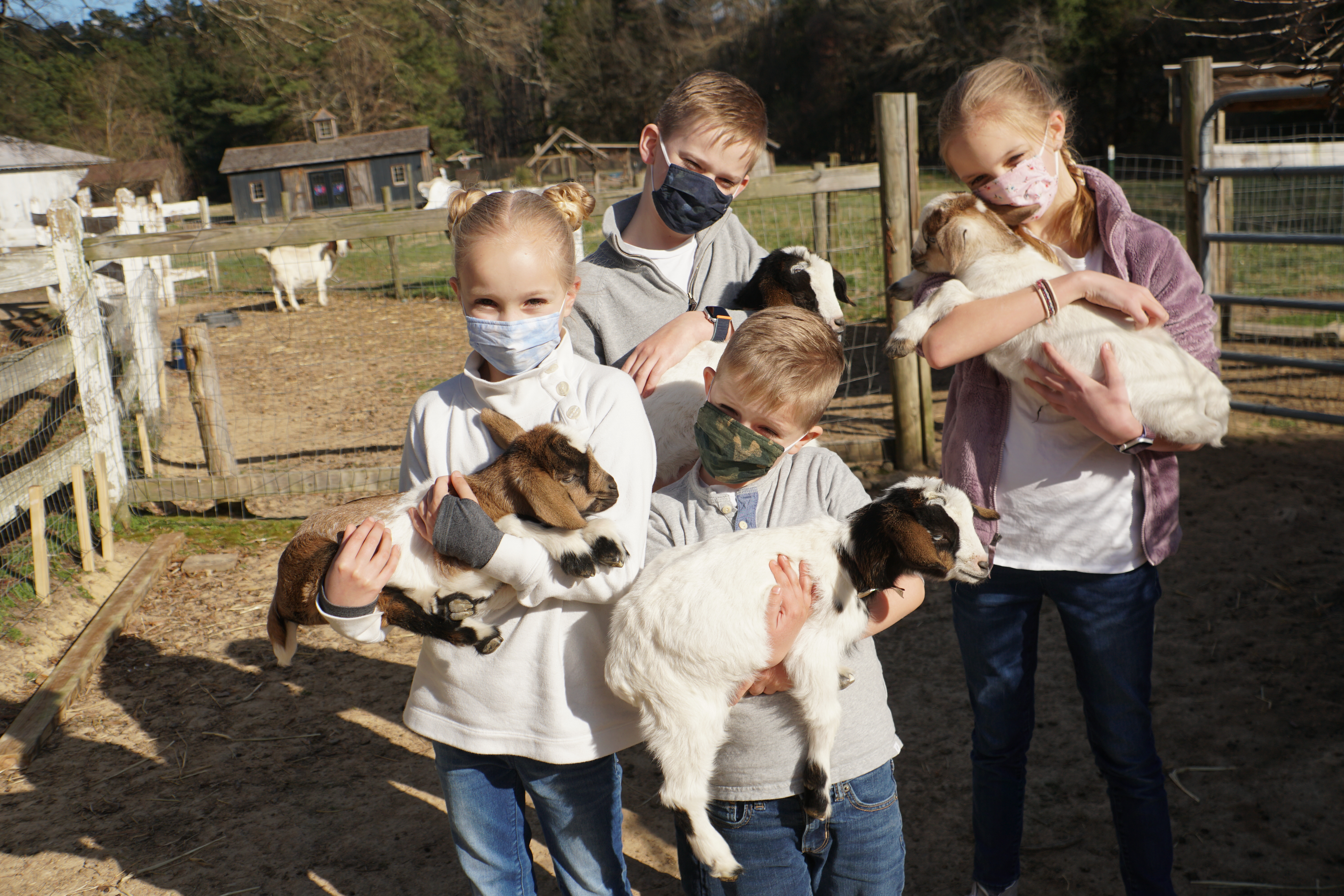 We had an AMAZING opportunity to visit the 1870 Farm in Chapel Hill for Goat Cuddles. We were flooded with goats in an open pasture by ourselves for over an hour. There were 1-week old triplets, and several 4-week old babies, teenagers, and mothers. Each one friendlier than the next.